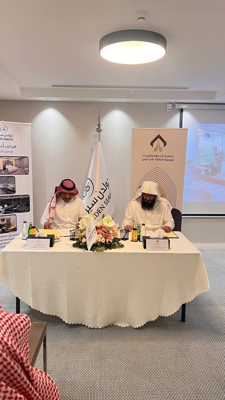 تم بفضل من الله توقيع عقد شراكة بين الجمعية وبين فندق قولدن سيزن للتعاون المشترك بينهما لتقديم الخدمة المجتمعية اللتي تخدم محافظة الرس و زوارها الكرام